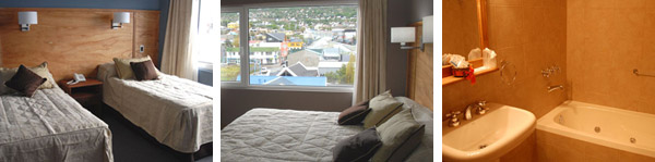 Besides the Hotel has 43 rooms with private bathrooms. All of them are large comfortable rooms, with wide windows that let you discover the wonderful views of Martial mountain range and Ushuaia bay. Every one of the rooms is warmly and cozy decorated.