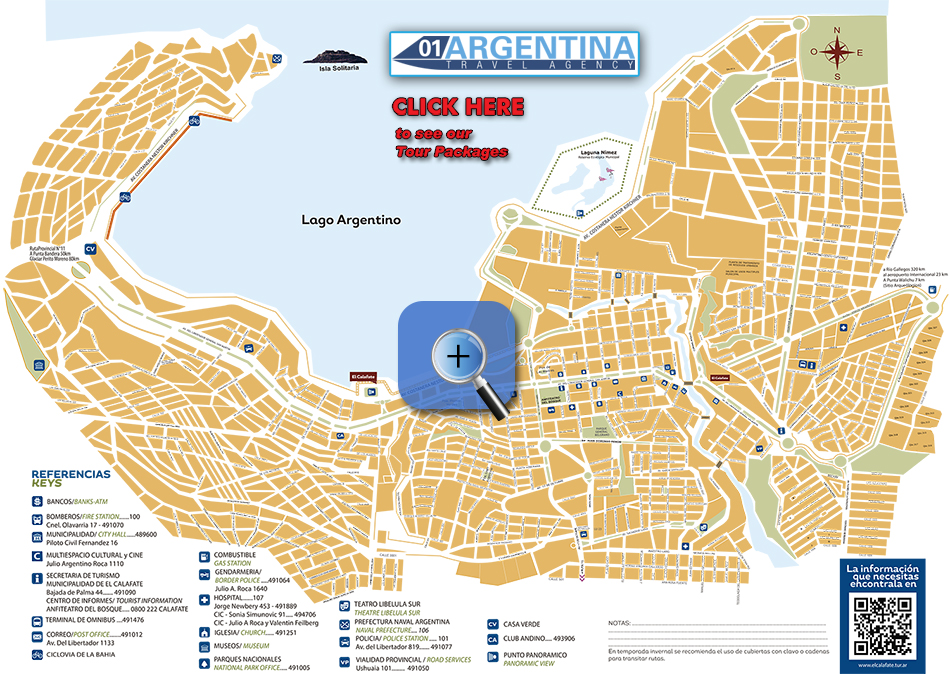 Click here to Book tours to Patagonia. Vacation packages to PatagoniaArgentina Travel Agency offer amazig tours to Patagonia Discover El Calafate: Your Ultimate Travel Guide Welcome to the enchanting land of El Calafate in the heart of Argentine Patagonia. To ensure you have a seamless and unforgettable journey, we present to you the El Calafate map – your trusted companion to navigate the wonders of this captivating destination. Explore with Confidence: Updated Travel Information Our interactive map provides you with the most up-to-date travel information, allowing you to plan your adventure with confidence. From iconic landmarks to hidden gems, our map highlights everything you need to know for a remarkable El Calafate experience. Key Features of Our El Calafate Map: Attractions: Discover the must-see attractions that make El Calafate a truly unique destination. From the stunning Perito Moreno Glacier to the charming streets of the town, our map guides you to the best experiences. Dining and Cuisine: Immerse yourself in Patagonian flavors by exploring local restaurants and eateries. Our map directs you to delectable dining options that cater to all tastes. Accommodation: Find the perfect place to stay among a range of accommodations, from cozy lodges to luxurious hotels. Our map provides details about different options to suit your preferences. Activities and Tours: Experience the thrill of adventure with various activities, such as trekking, glacier tours, and boat excursions. Our map lists reputable tour perators for safe and exciting experiences. Local Insights: Unlock the secrets of El Calafate with insider tips and recommendations from locals. Discover hidden trails, viewpoints, and cultural hotspots that nrich your journey. Transportation: Navigate the town effortlessly using our map's transportation information. Easily locate bus stops, taxi stands, and other transportation hubs. Your Journey, Your Way: Whether you're a nature enthusiast, an adventurer seeking thrills, or a traveler yearning for tranquility, the El Calafate map caters to every traveler's desires. Immerse yourself in the breathtaking landscapes, vibrant culture, and warm hospitality that define this remarkable destination. Plan your itinerary, make informed decisions, and embark on a journey of a lifetime with the El Calafate map as your guide. Your adventure begins here. Unveil the Magic of El Calafate: Your Ultimate Travel Companion Venture into the realm of El Calafate, nestled in the heart of Argentine Patagonia, and embark on an unforgettable journey guided by our comprehensive El Calafate map. This indispensable tool ensures that your exploration of this captivating destination is as seamless and enchanting as the landscapes that surround you. Empower Your Adventure: Timely Travel Insights Our interactive map empowers you with real-time travel insights, equipping you to craft your dream expedition with unwavering confidence. From iconic landmarks to off-the-beaten-path treasures, our map is your gateway to unlocking the essence of El Calafate. Key Highlights of Our El Calafate Map: Must-Visit Landmarks: Navigate the iconic attractions that define El Calafate's charm. Witness the awe-inspiring grandeur of the Perito Moreno Glacier and traverse the town's quaint streets, all effortlessly guided by our map. Culinary Odyssey: Immerse your palate in the flavors of Patagonia through a gastronomic journey of local restaurants and eateries. Our map steers you toward culinary delights that cater to every taste bud. Retreats of Tranquility: Discover your haven among a variety of accommodations, from snug lodges to lavish hotels. Our map provides a curated selection to match your preferences and desires. Thrilling Pursuits: Seek adventure with an array of activities like trekking, glacier expeditions, and boat tours. Our map lists accredited tour operators, guaranteeing safe and exhilarating escapades. Insider Knowledge: Uncover El Calafate's best-kept secrets with insider insights from locals who know the land like the back of their hand. Traverse hidden trails, embrace panoramic vistas, and immerse yourself in local culture. Seamless Mobility: Navigate El Calafate effortlessly using our map's transportation details. Locate bus stops, taxi stands, and other travel hubs without a hitch. Craft Your Tale: Craft your personal narrative in El Calafate, whether you're a nature enthusiast, an intrepid explorer, or a seeker of serenity. The El Calafate map caters to your aspirations, enveloping you in nature's grandeur, cultural richness, and warm hospitality. Design your itinerary, forge well-informed choices, and let the El Calafate map be the compass guiding you towards extraordinary experiences. Your odyssey commences here. Uncover the Enchantment of El Calafate: Your Ultimate Expedition Partner Embark on a voyage of wonder in the heart of Argentine Patagonia with El Calafate as your destination, and our all-encompassing El Calafate map as your steadfast guide. As you navigate this captivating land, let our map be your key to unlocking the secrets and treasures that await. Elevate Your Exploration: Real-Time Travel Wisdom Empower yourself with the latest travel insights through our dynamic map, a tool designed to arm you with the knowledge needed to shape your perfect adventure. From renowned landmarks to hidden marvels, our map ensures you see El Calafate in all its splendor. Pivotal Features of Our El Calafate Map: Landmarks to Cherish: Traverse the remarkable attractions that define El Calafate's allure. Witness the breathtaking Perito Moreno Glacier and navigate the town's charming avenues—all guided by our map's precision. Culinary Sojourn: Immerse your senses in the flavors of Patagonia through an expedition of local eateries. Our map directs you to culinary havens that cater to every palate and preference. Havens of Repose: Find your sanctuary among a spectrum of lodgings, from cozy lodges to luxurious retreat